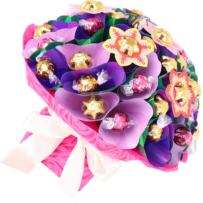 A stunning flower bouquet, thisBright Flower Bouquet Luxury is sure to deliver a smile with: 6 solid milk Chocolatier Australiafoil-wrapped golden stars on oursignature Sunrise flower cards?; 12xsolid milk Chocolatier Stars?; 7 x White Lindt Balls?; 7 x Raspberry Lindtballs?; Signature Edible Blooms bouquetpresentation?; A message card for apersonalisednote?; Delivered in our signature gift boxor carry bag (pictured); Our team recommends adding Ferrero Rocher topersonalise the design of this bouquet (see options on the next screen). Send this gift anywhere in Australia, including the option of Same Day Date Guaranteed to any major city. In regional areas we deliver with premium Star Track or Australia Post Express, however, these services do not come with a date guarantee.PS You’ll receive an email to track the progress of your delivery from the moment it leaves our doors.Interested in more nutritional information, click here.