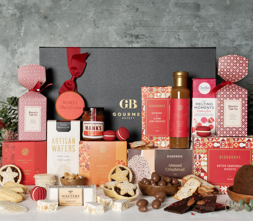 - Stylishly presented in our Gourmet Basket Signature Christmas Gift Box finished with ribbon, tissue and gift card