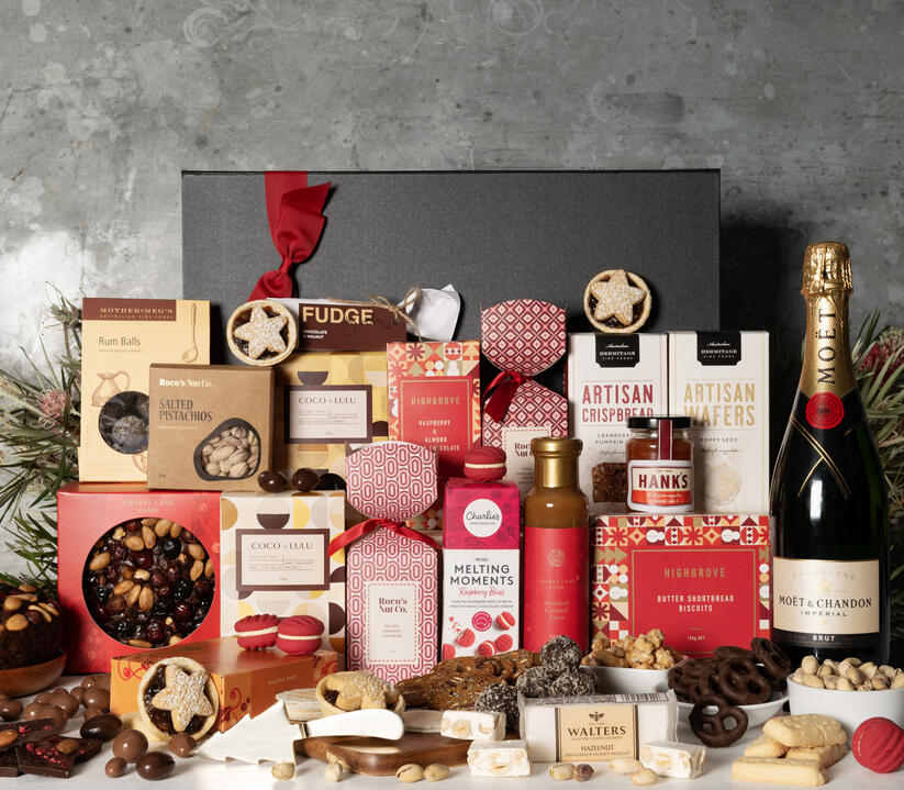 This Christmas gift hamper is a whole lot of indulgence, perfect for corporate gift giving and sending festive wishes to family and friends, they’ll be thrilled with the sweet and savoury treats inside.