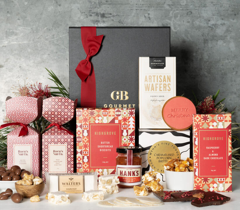 - Stylishly presented in our Gourmet Basket Signature Christmas Gift Box finished with ribbon, tissue and gift card
