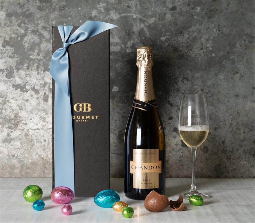 The Easter Bubbles Gift Hamper is the perfect present for those who want to celebrate the season with a touch of luxury. This beautiful gift basket includes a bottle of Chandon Brut Sparkling wine, made in Australia, and boasting a delicate balance of citrus and pear flavors with a crisp, refreshing finish.