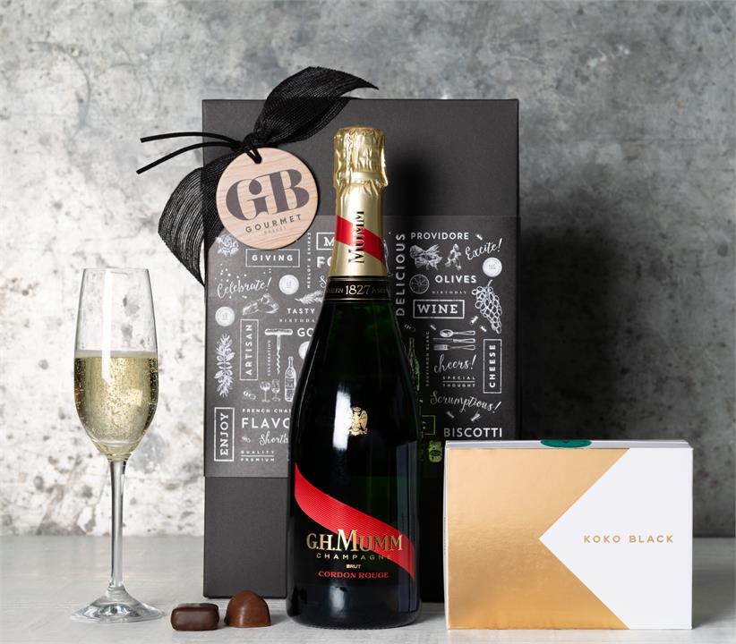 An elegant choice of champagne paired with a premium chocolate box