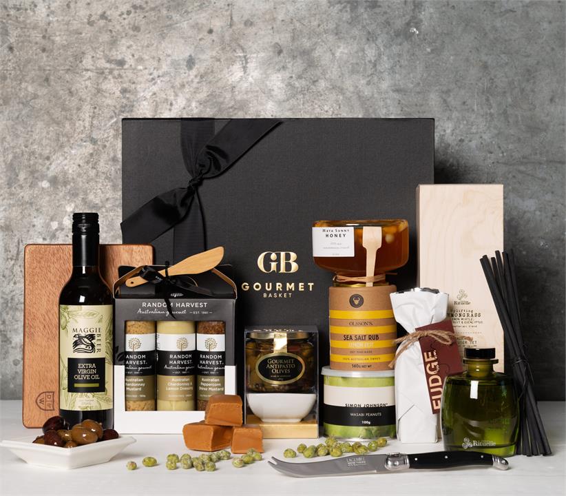 - Stylishly presented in our Gourmet Basket Signature Gift Box finished with ribbon, tissue and gift card