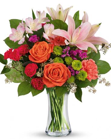 Happy Go Citrus$145.95 Home / Flowers / Happy Go Citrus The Gift of Flowers! Select SKU: A341 Category: Flowers Description Description This happy splash of bright orange roses and playful pink lilies arrives in a stylish glass vase. The perfect pick-me-up for any occasion! Related products Merry & Bright $165.95 Select Tanami Beauty $148.95 Select Pretty in Pastel $103.95 Select Enchanted Garden $113.95 Select Universal Love $153.95 Select Pink Flora $108.95 Select Citrus Splash $108.95 Select Graceful Beauty $98.95 Select