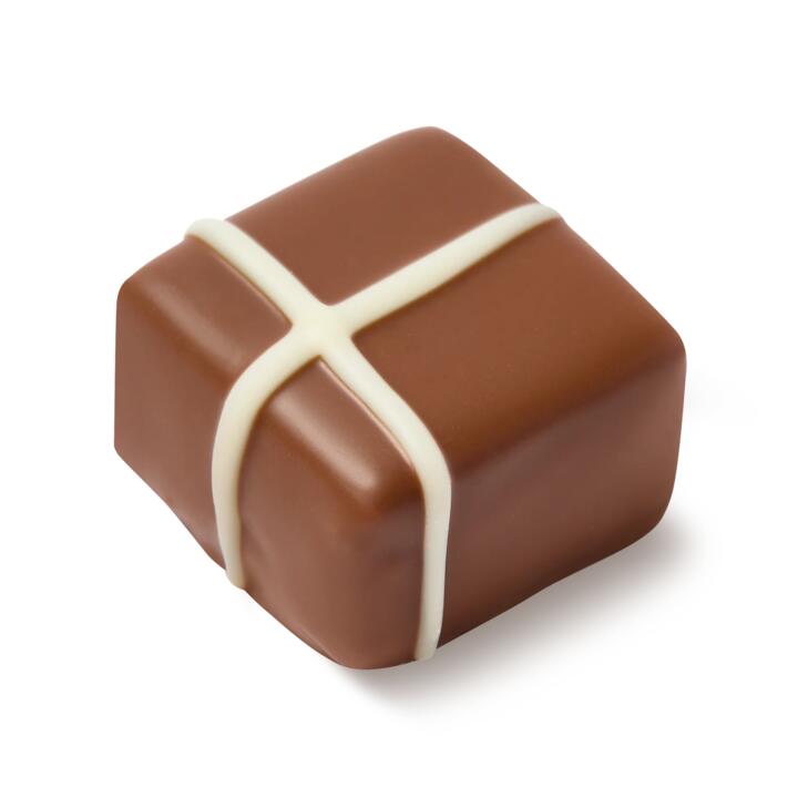 A chewy caramel centre with hot cross bun spices enrobed in milk chocolate.
