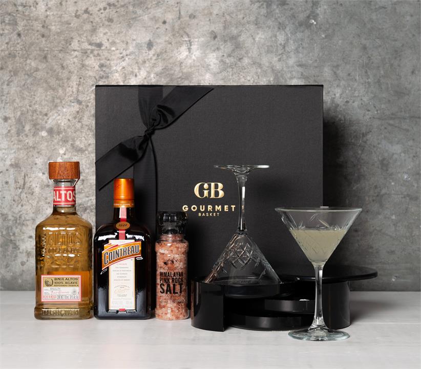 The ultimate Margarita Cocktail hamper. This hamper includes everything you need to create the perfect Margarita cocktail at home. Inside, you’ll find a bottle of Jose Cuervo Tequila, Cointreau, lime juice, a classic cocktail shaker, salt and a gorgeous margarita glass to serve your drinks in style. Bring the party to your own home and impress your guests with your bartending skills! And to make this Margarita Cocktail hamper even more special, it comes beautifully presented in Gourmet Basket’s stylish packaging adding an extra touch of sophistication. Order your Margarita Cocktail hamper today and get ready to sip on the perfect blend of tequila, lime, and sweetness! It’s the perfect gift for any occasion, whether it’s a birthday, anniversary, or just because.