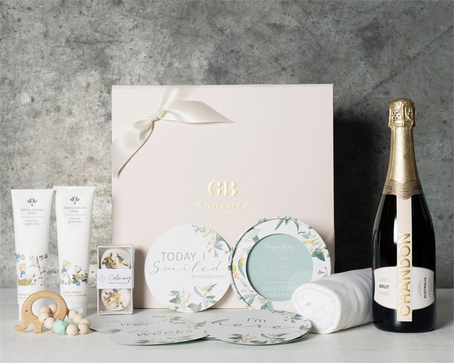 - Stylishly presented in our Gourmet Basket Signature Baby Gift Box finished with ribbon, tissue and gift card