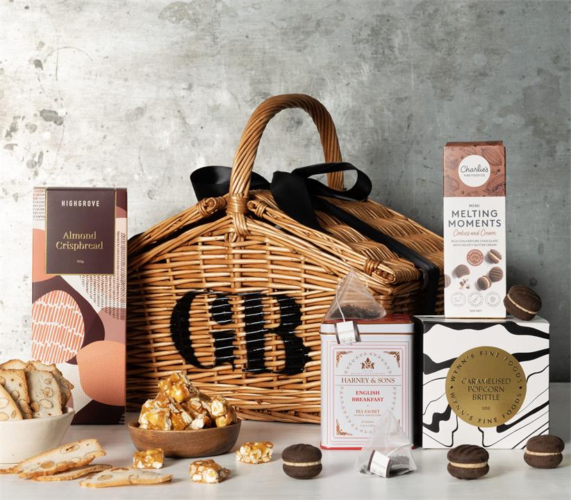 - Stylishly presented in our Gourmet Basket Signature Huntsman Basket finished with ribbon, tissue and gift card