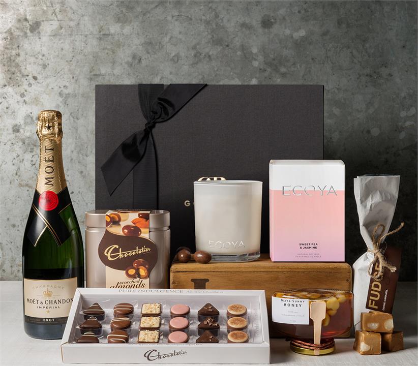 Showing your gratitude is easy with this beautiful Gratitude Hamper. Containing French Champagne and some delicious, sweet treats this is an unforgettable gift.