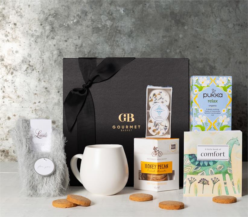 - Stylishly presented in our Gourmet Basket “With Sympathy” Gift Box finished with ribbon, tissue and gift card